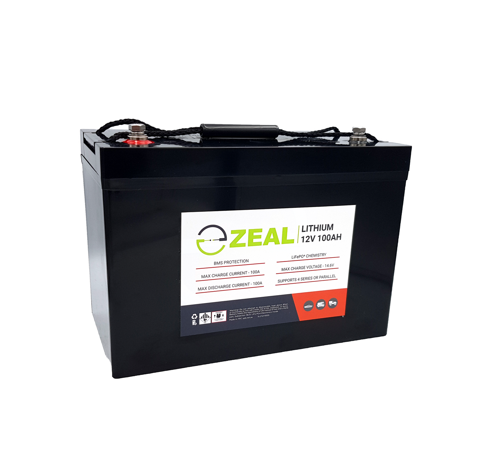 Zeal 12V 100Ah LiFePO4 Lihtium Battery, 3 Year Warranty. Zeal lithium is an economical 12V Lithium Iron Phosphate (LiFePO4) solution by Sealed Performance Batteries (SPB) which provides the core performance and safety advantages of a modern lithium battery in a sturdy design.