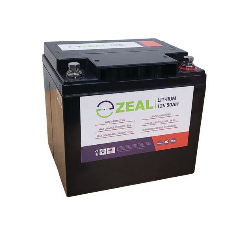Zeal 12V 50Ah LiFePO4 Lihtium Battery, 5 Year Warranty. Zeal lithium is an economical 12V Lithium Iron Phosphate (LiFePO4) solution by Sealed Performance Batteries (SPB) which provides the core performance and safety advantages of a modern lithium battery in a sturdy design.