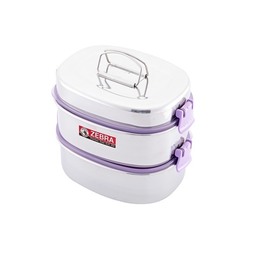 Zebra Stainless Steel Tiered Lunch Box, 1 Year Warranty. This handy tiered lunch box is perfect for home, school and the campsite. The food grade stainless steel box has two tiers, allowing you to split your food up and reduce the risk of spoiling or contamination. You can also make use of the inner tray to properly package your snacks, and the sturdy locks will ensure everything stays safe!