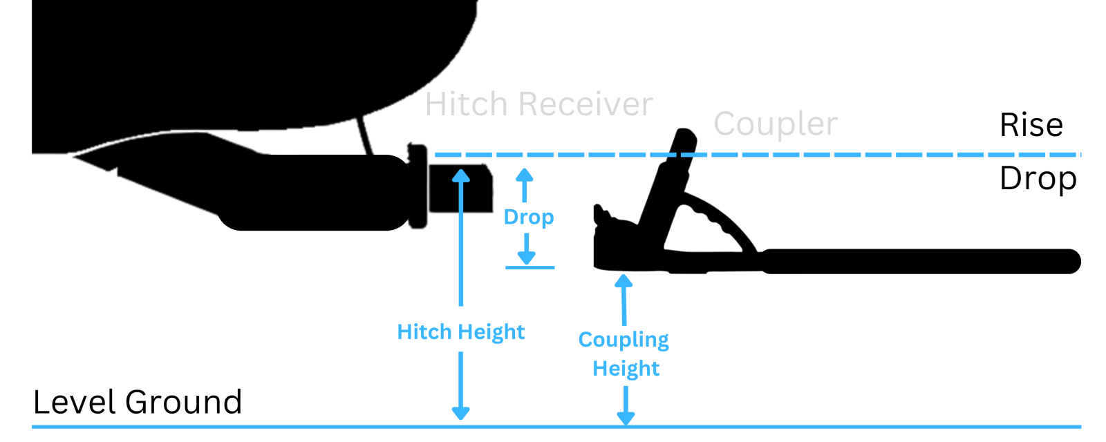Once you have these two measurements you will subtract your hitch height from your coupler height giving you your drop. If your trailer sits higher than your tow vehicle you will need to subtract your coupler height from your hitch height . This will give you your rise.