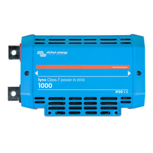 The Lynx Class-T Power In connects and fuses up to two strings of Lithium batteries. It features a positive and negative busbar, and connections for two Class-T fuses as well as a connection to ground the DC system. The Class T-fuses, available in 225A, 250A, 350A and 400A, must be purchased separately.