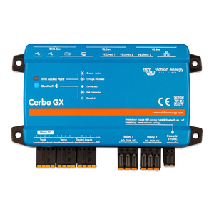 Maximise your system performance. The Cerbo GX MK2 maximises the performance of your systems components in real-time and keeps them in perfect tune. With its Dual Core Processor and the addition of an extra CAN-bus port you can now support even bigger systems; closely follow managed (lithium) batteries while the second port can support up to 25 simultaneously connected VE.Can solar chargers. The new NMEA 2000-out support has the GX easily integrated into any boats network. Four tank- and four temperature ports as well as 3 VE.Direct ports, 3 USB ports, 4 digital inputs and 2 relays allow you to expand control to a new level. Maximising systems performance was never this easy.