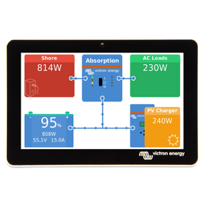 Expand your view. The new (optional) GX Touch 50 display allows you to have an instant overview of your system and adjust settings in the blink of an eye. Its super slim 5 inch waterproof design, top-mountable setup and its simple installation bring a lot of flexibility when creating a crisp and clean dashboard.